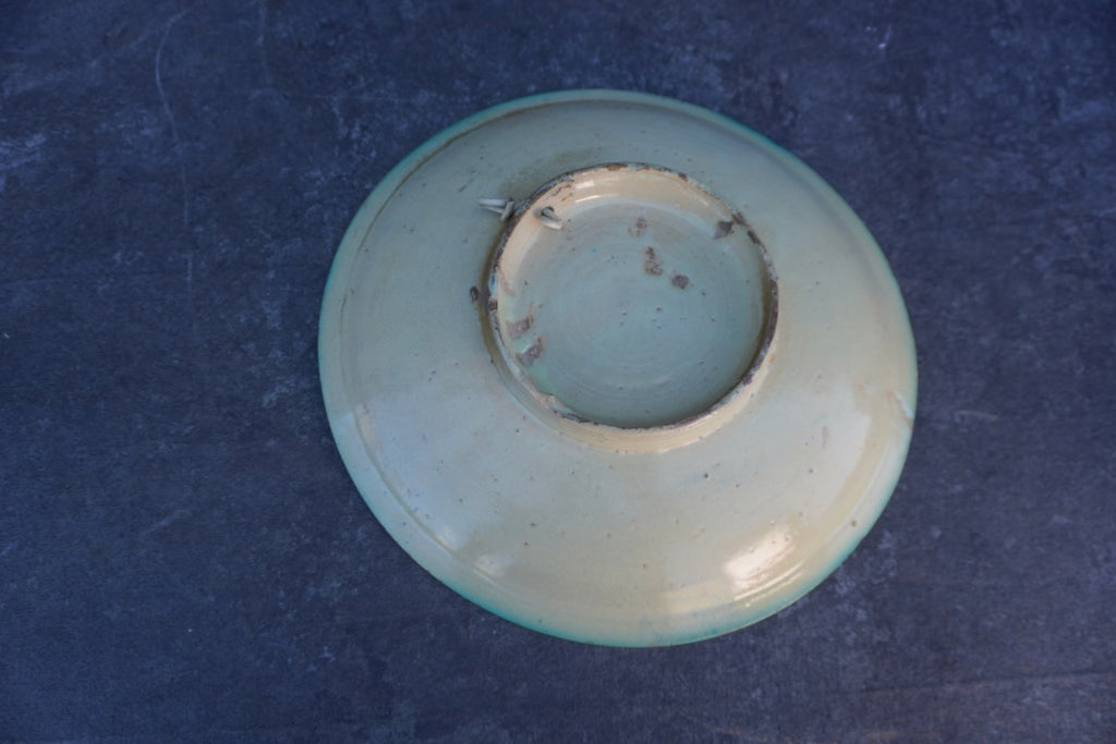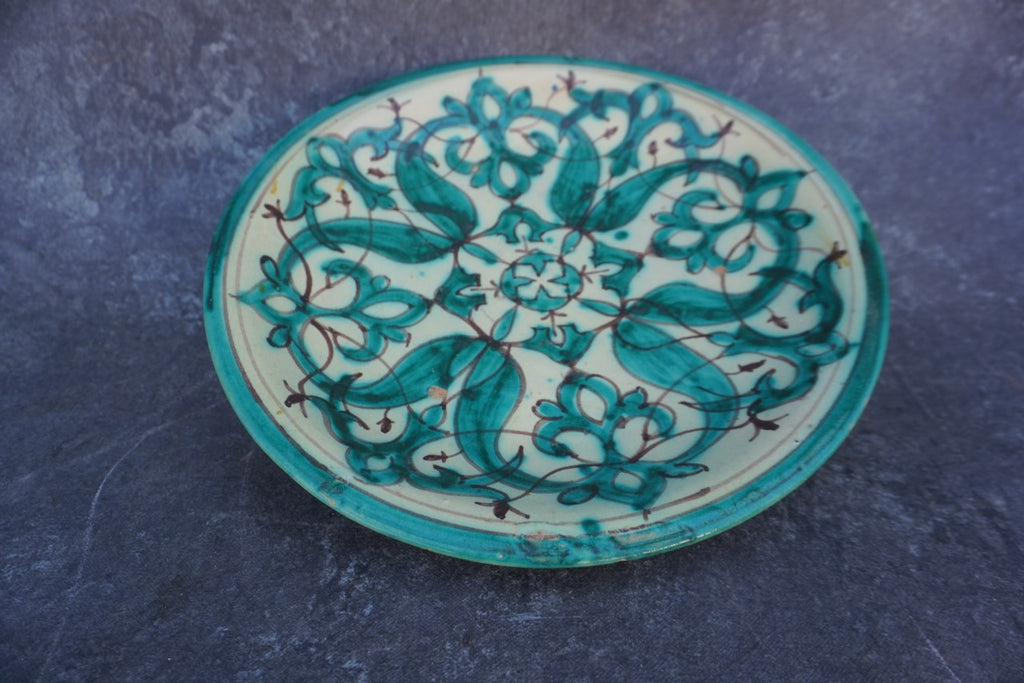 This late 19th-century Spanish Hispano-Moresque wall plate showcases an intricate geometric design, characteristic of the style and period. The craftsmanship reflects the rich artistic heritage of Moorish-influenced Spanish ceramics. In excellent condition, the plate has no chips, cracks, or repairs, making it a superb collector's piece or decorative accent.