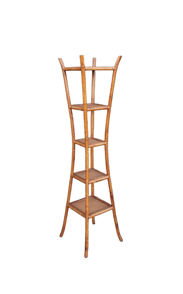 Antique Bamboo Ratan 5-tier Corner Shelf F2763