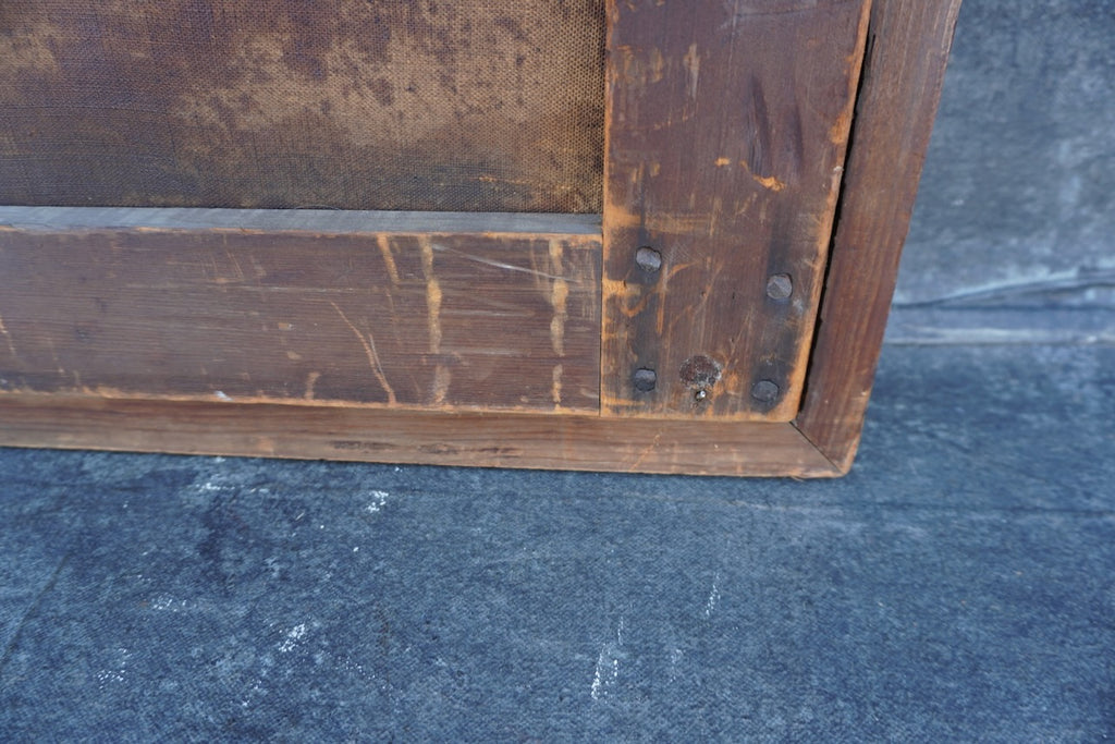 The canvas is secured with handmade nails, consistent with early construction methods. Surface wear and patina are commensurate with age. Overall wonderful condition for a piece of this age.