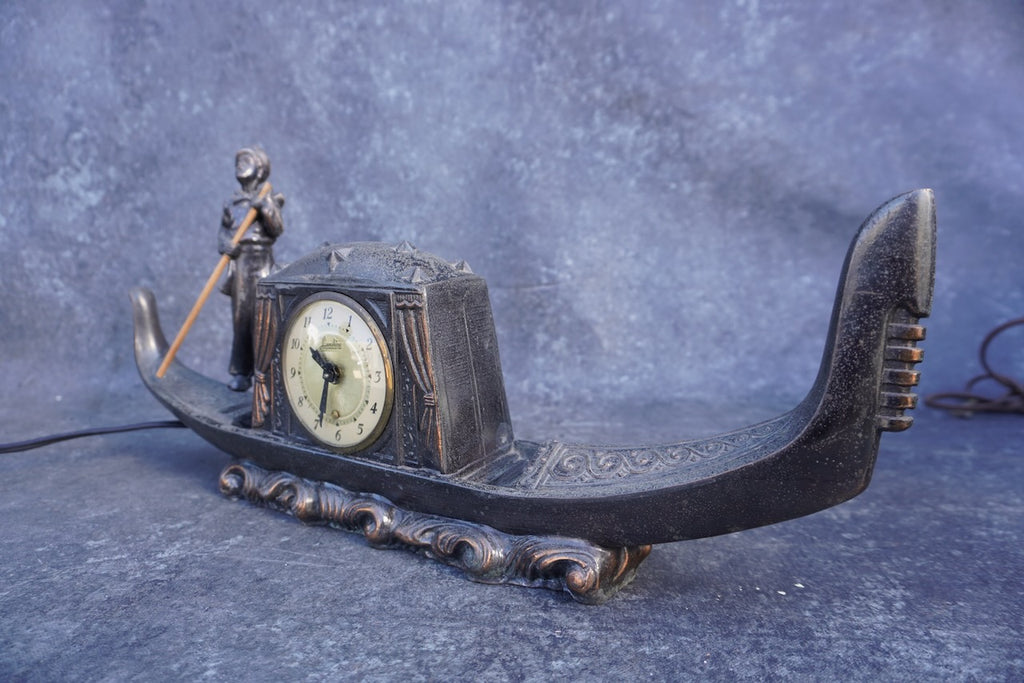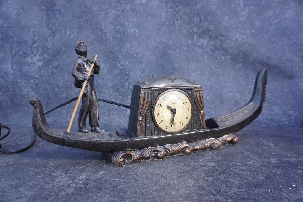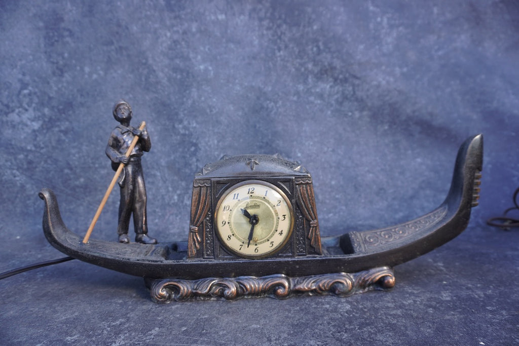 Boy on Gondola, Lanshire Synctime Desk Clock, Non-Working Condition A3307