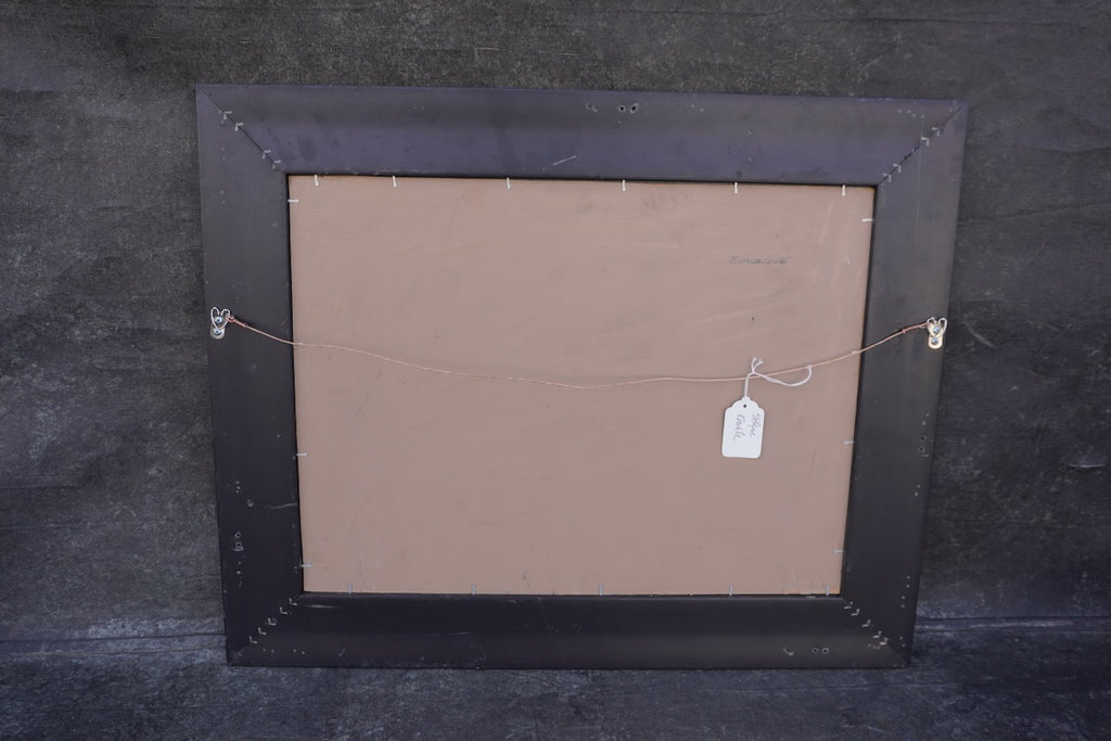 A silhouetted dancer stands at center stage, her elongated form caught mid-motion beneath a wash of glowing blues and soft whites. Painted in oil on board, the work uses loose, expressive brushstrokes to suggest movement and emotion rather than precise detail. Darker, earthy tones hint at an audience fading into the background. In this piece, Edgar Kiechle’s (1911-1960) expressive style emphasizes atmosphere and feeling, capturing the quiet intensity and freedom of performance.