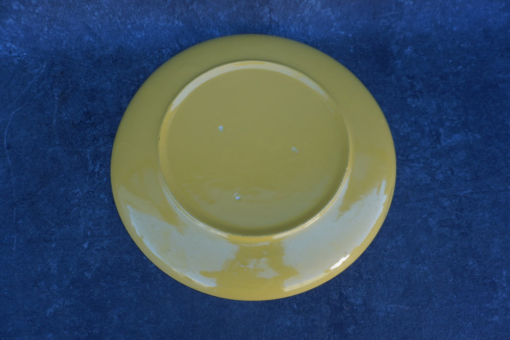 Bright yellow charger plate by Garden City. No chips, cracks, or repairs. Excellent condition. Its generous size also makes it perfect for use as a serving tray.