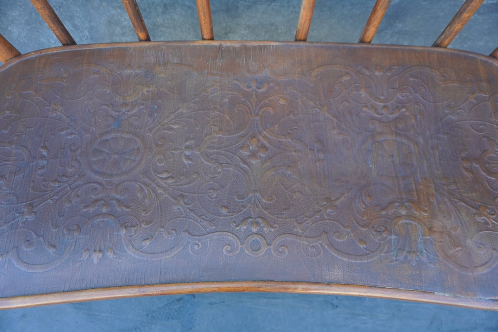 This stunning embossed bench by Thonet is a true showstopper, combining exceptional craftsmanship with timeless design. Featuring intricate embossed detailing on the seat, this piece showcases the level of artistry and precision that made Thonet a leader in bentwood furniture. Please refer to the photos for close-up views of the pattern work—each detail speaks to the bench’s unique character and history.