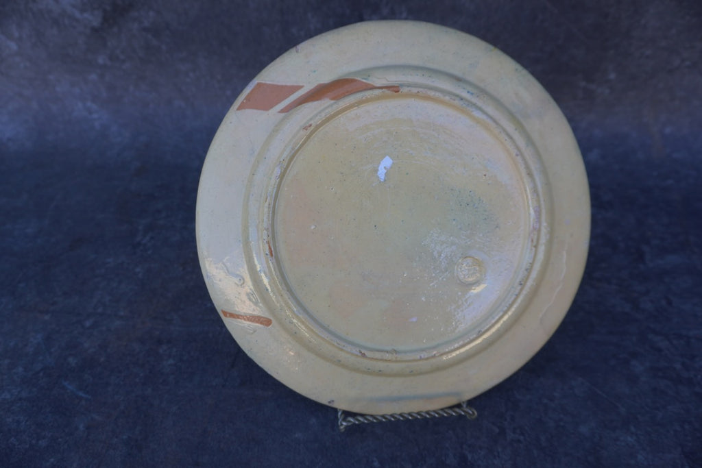 This charming Mexican wall plate showcases a delightful depiction of a donkey as the central figure, surrounded by a vibrant hand-painted scene. Look closely to appreciate the unique drip-paint effect that adds depth and texture to the background, giving the piece a dynamic, almost fluid sense of movement. A wonderful blend of folk artistry and craftsmanship, this plate makes a striking addition to any wall display or collection of traditional Mexican ceramics.