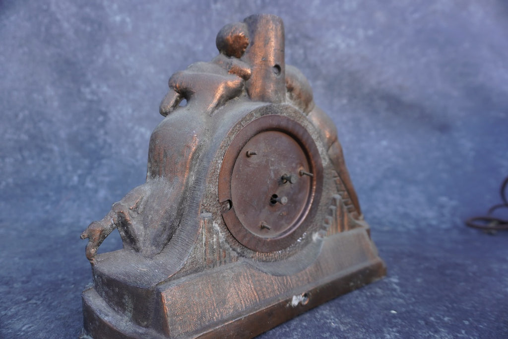 Non-working clock from United, featuring a sculptural design of two lovers, or "Sweethearts", kissing atop the clock face. Please see detailed photos for condition of piece.